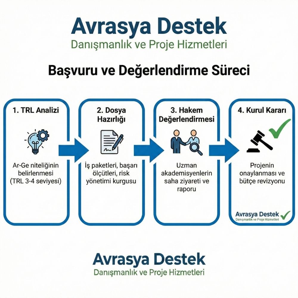 - Teknoloji Hazırlık Seviyesi (TRL) Analizi: Projenin Ar-Ge niteliğinin belirlenmesi (Genellikle TRL 3-4 seviyesinde başlangıç beklenir).